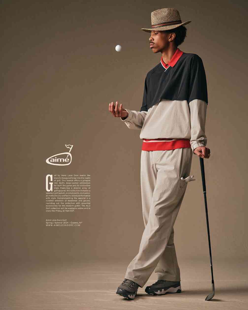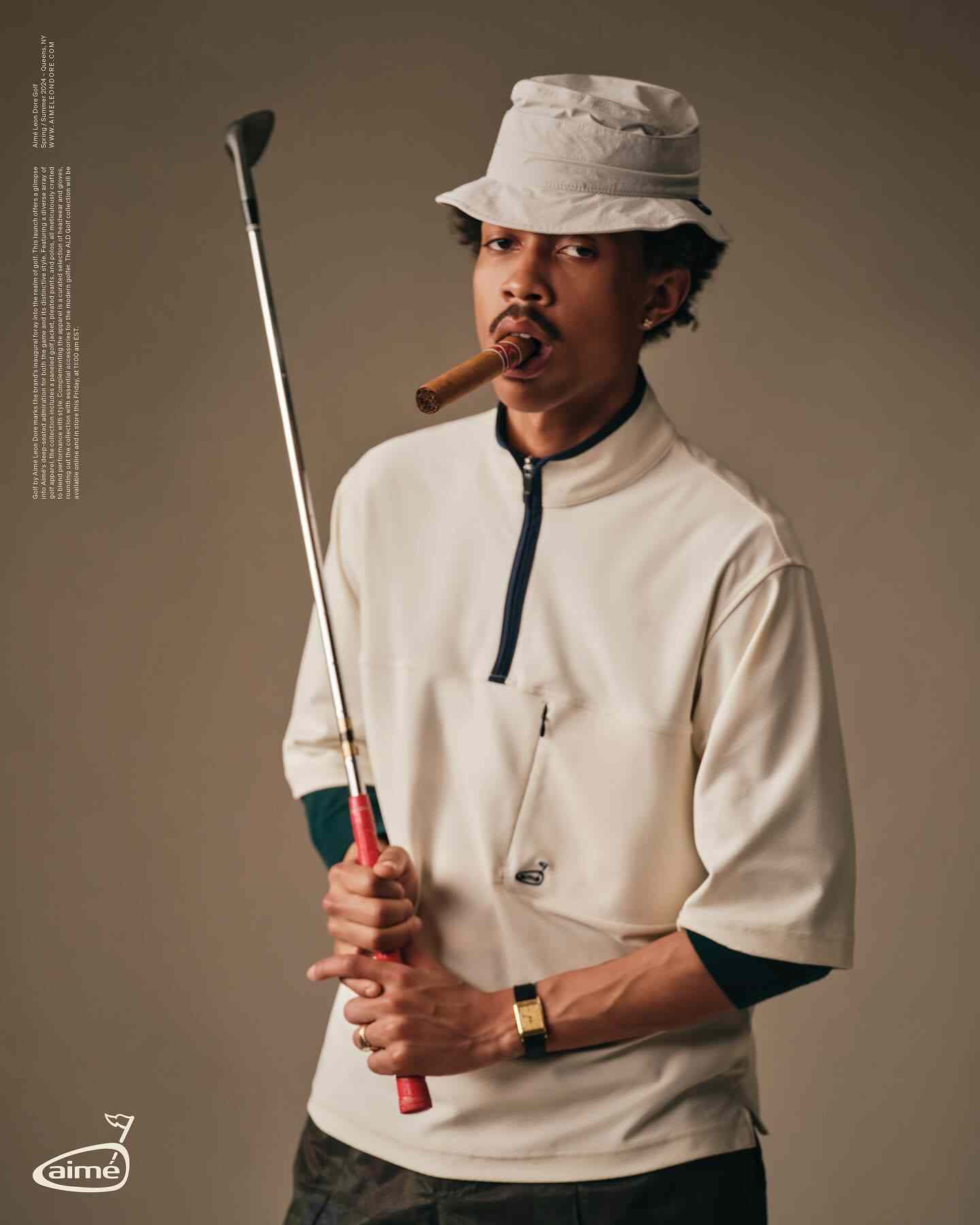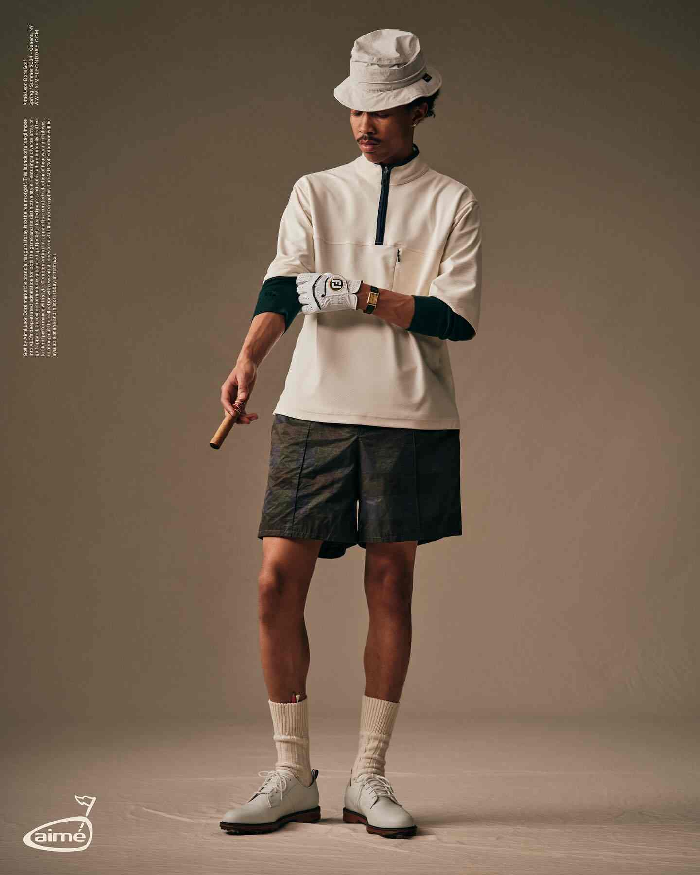 所以可以看到 Aimé Leon Dore,KITH,Reigning Champ 这些注重质素的北美品牌纷纷开始推出高尔夫产品线或与专业高尔夫品牌深度合作,更不用说早就开始于这个市场中布局的 BEAMS Golf。不久前 Louis Vuitton 与 Tyler, The Creator 合作的型录中也能看到高尔夫服饰文化的亮相,引人注目的层次感之下是对于基础款单品的精雕细琢,所以高尔夫穿搭的破圈其实也是一种长期主义运动风潮下静奢的延伸。