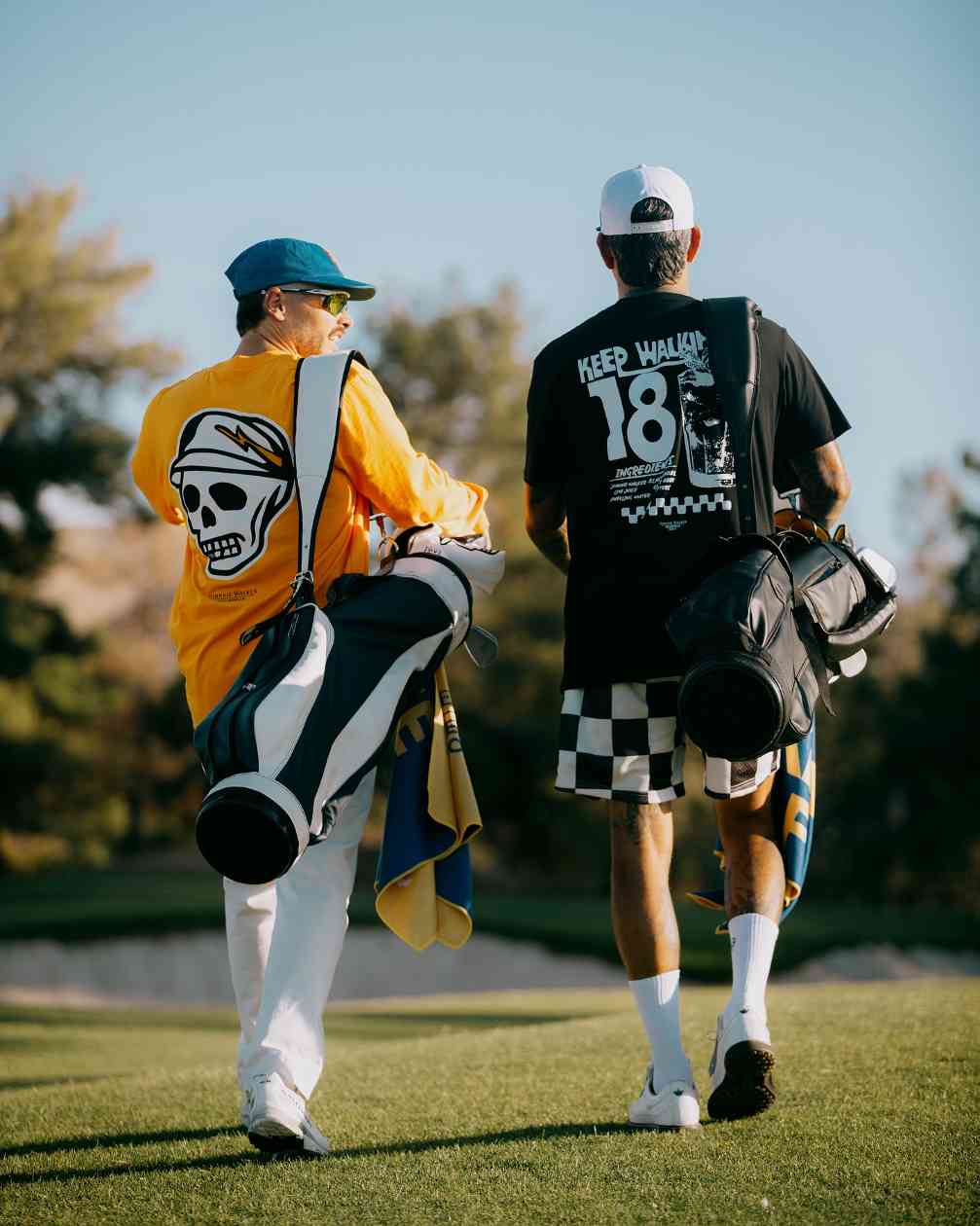 除了 Aimé Leon Dore,KITH 以及 Nike Golf 和 BEAMS Golf 等大家都熟知的高尔夫产品线之外,其实很多新锐高尔夫品牌反而更能不破不立,带来更多惊喜。首先就是 Devereux Golf®。Devereux Golf® 更像是一个高尔夫运动语境下的高级街头品牌,贯穿始终的手绘骷髅元素与改良后的篮球短裤等具有街头气质的运动单品共同营造出全新的街头时尚触觉,这种反叛与一向内敛的高尔夫运动形成鲜明对比。