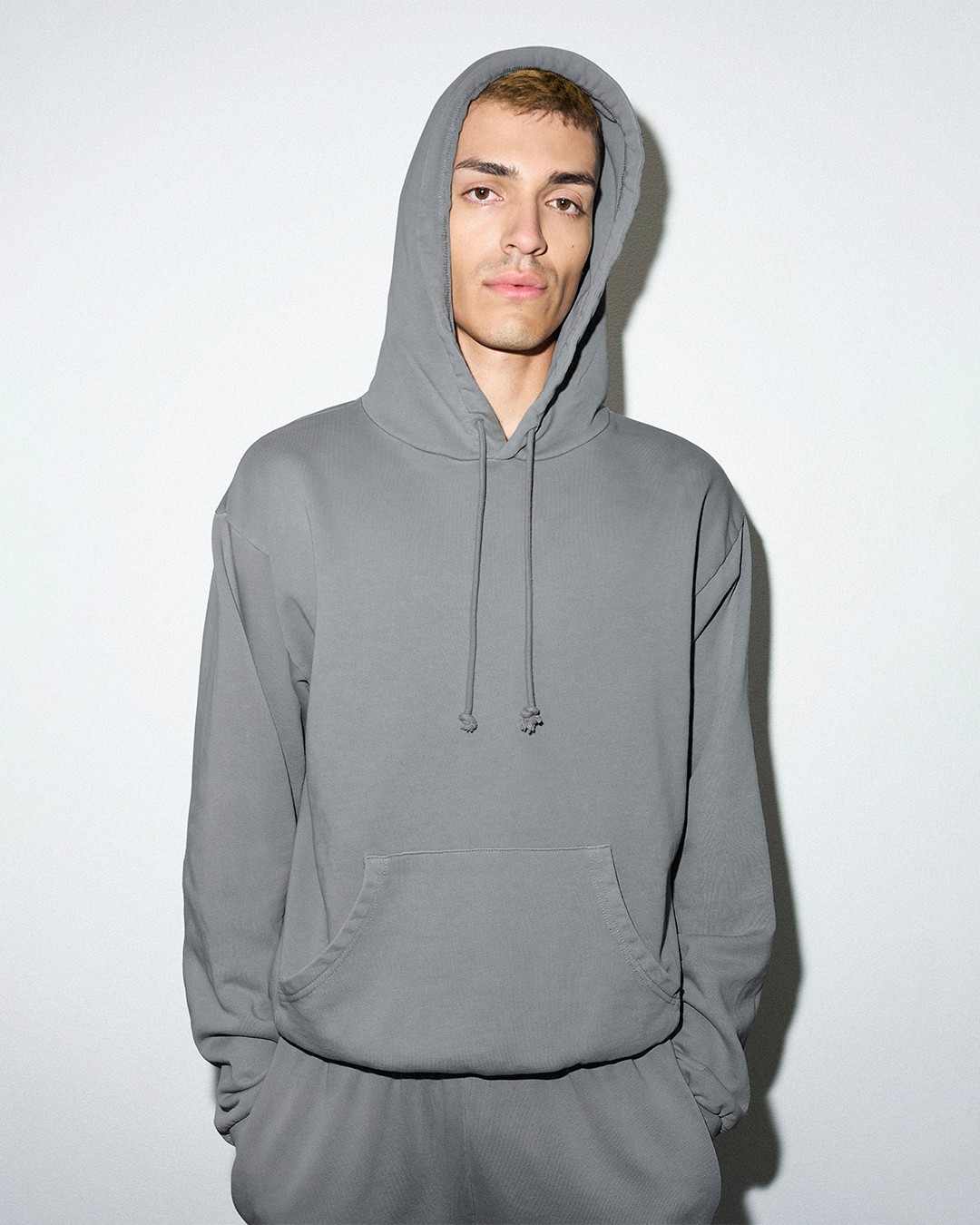 另一个细微之外的问题是 SKIMS 男装线产品在舒适度以及廓形设计之外,还未看到标识性的针织细节,比如短袖或卫衣领口或袖口的织法与尺寸比例,在没有 logo 与印花的服饰体系中细节上的辨识度与独特性显得尤为重要,尤其是陈列在精品选货店中的时候。