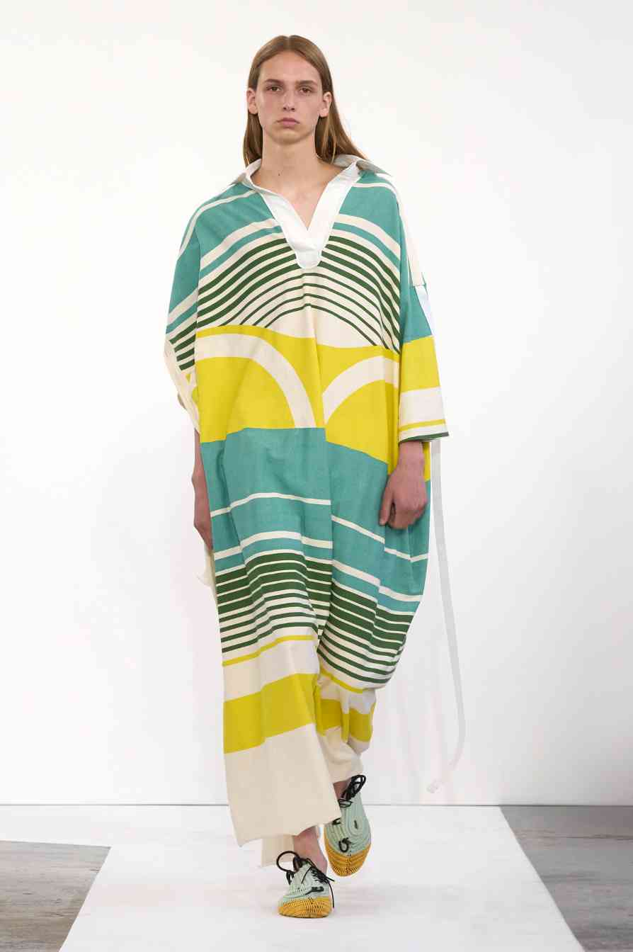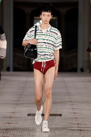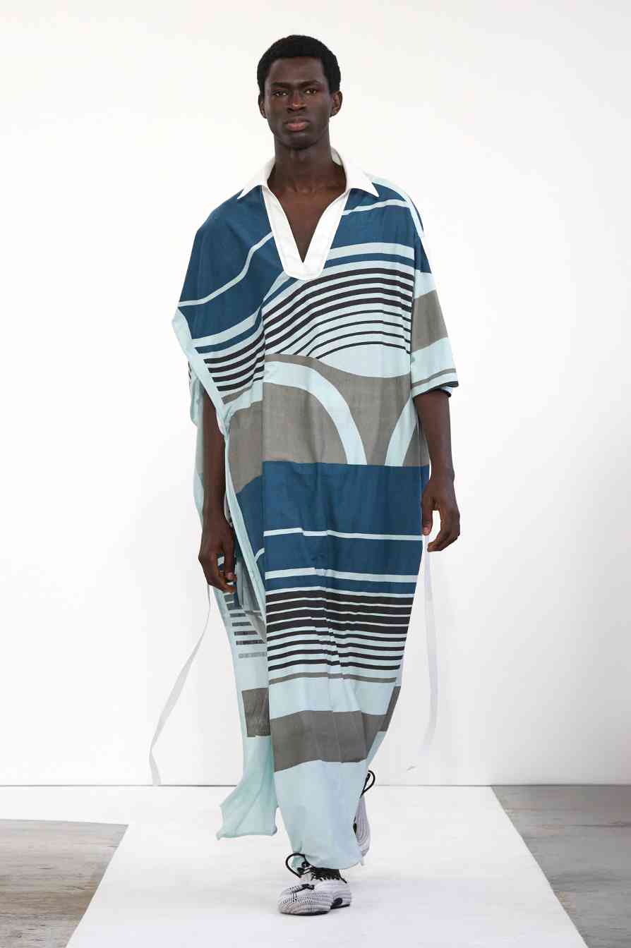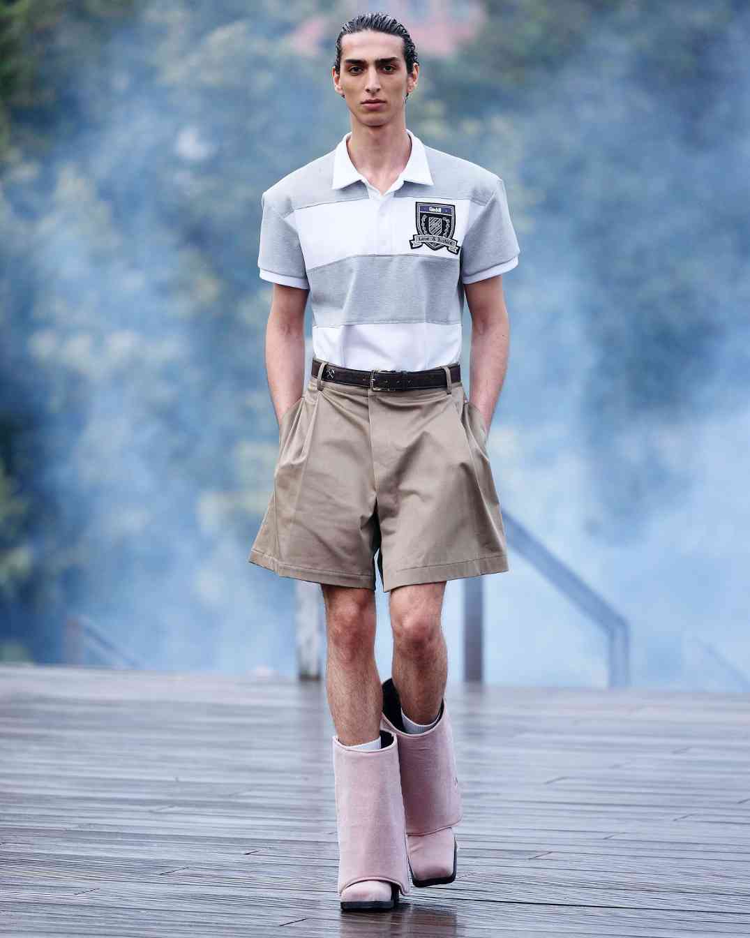 而要论创造力和立体美学解读的代表人物,Craig Green 自然不遑多让,2025 春季系列中与 Fred Perry 合作重制的双领设计 POLO 衫,以及长到可以当连衣裙的斗篷式魔改 POLO 衫,都是 Craig Green 标新立异时装基因的独特体现。