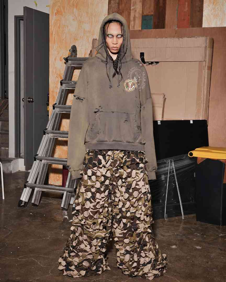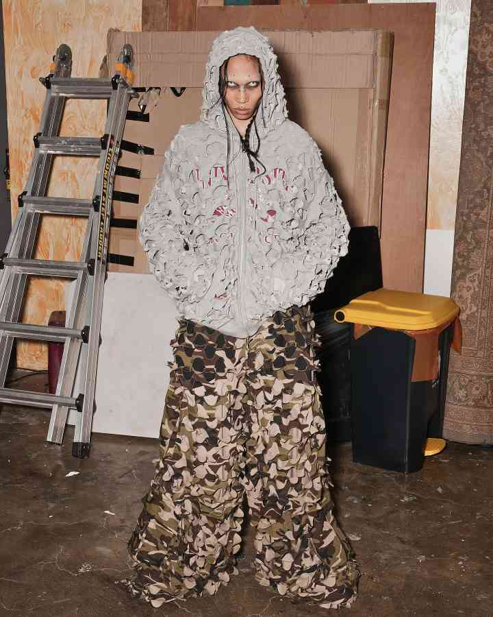 PROJECT G/R x ENG 现场展示的 2024 春夏系列迷彩长裤 | Via ENG