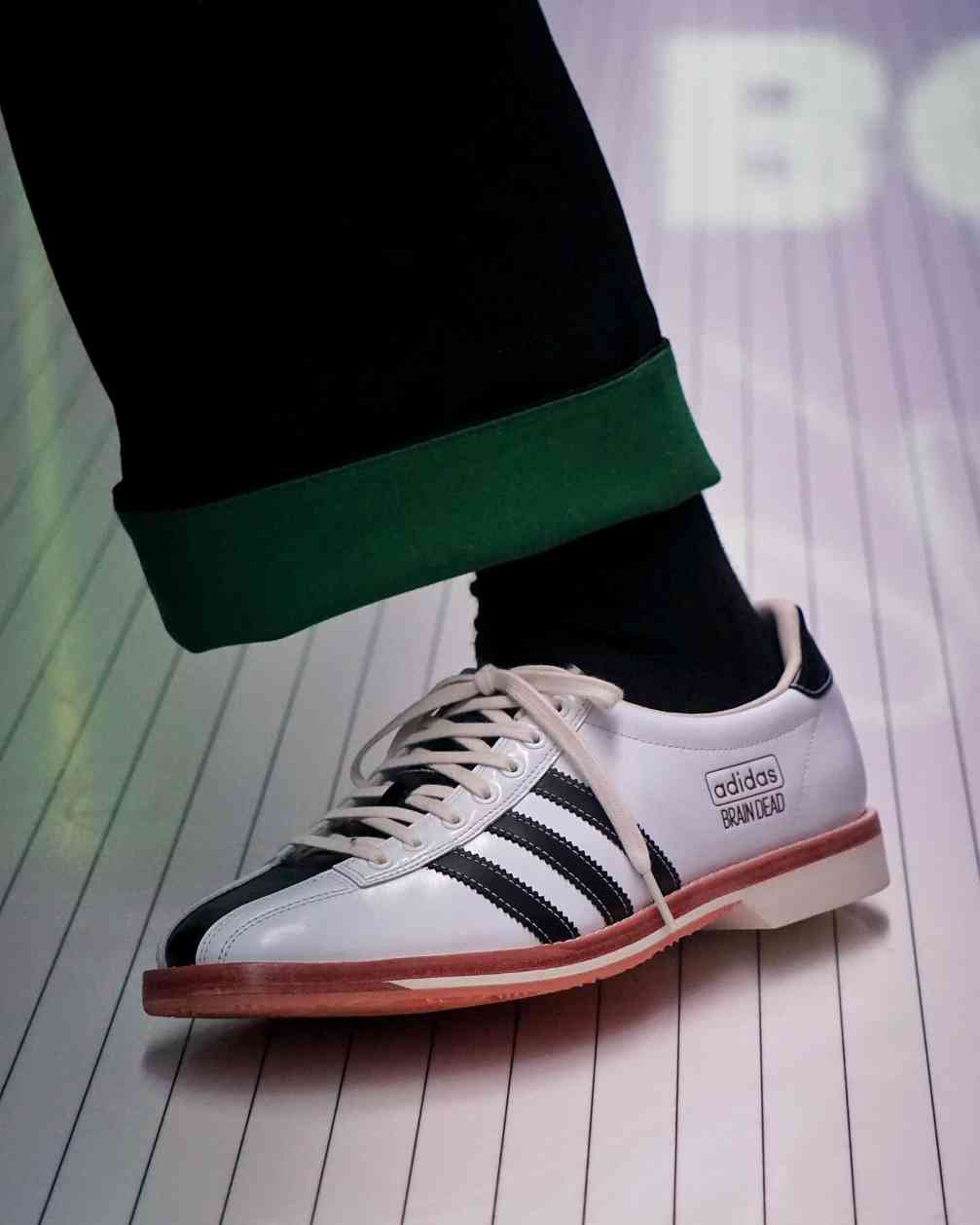 在保龄球衬衫被各路品牌当作夏季系列的轴心单品之外,复古保龄球鞋也开始崭露头角,成为很多球鞋玩家全新的入手选择。上世纪 80 年代左右的 Vintage Nike Bowling Shoes 在海外二手平台此前掀起了不小的热度,adidas Originals 联合 Brain Dead 围绕复古保龄球鞋的合作企划继续为这个微趋势推波助澜。尽管这次联名没有高调宣发,但确实是近两年来薄底鞋中最具工艺可玩性的单品之一了。